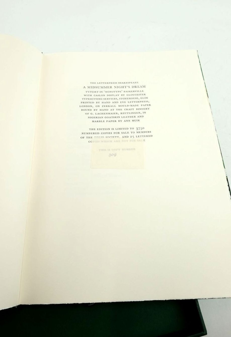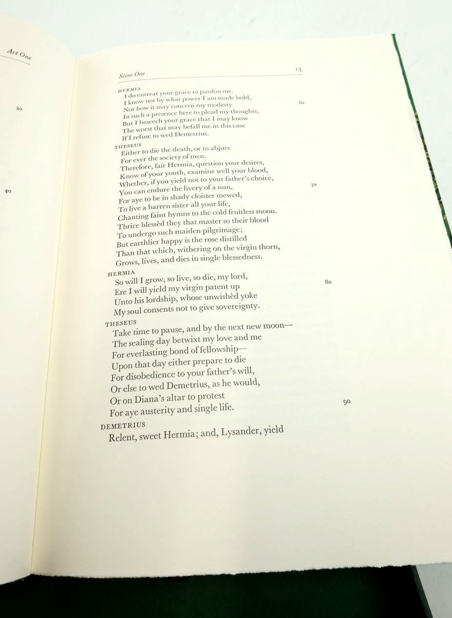 Fine condition. Edited by Peter Holland. Large format, includes a commentary volume, contained in solander case. Three-quarter bound in green goatskin leather, green marbled boards. Top edge gilt. Commentary volume is bound in green cloth. Limited Edition of 3750.
