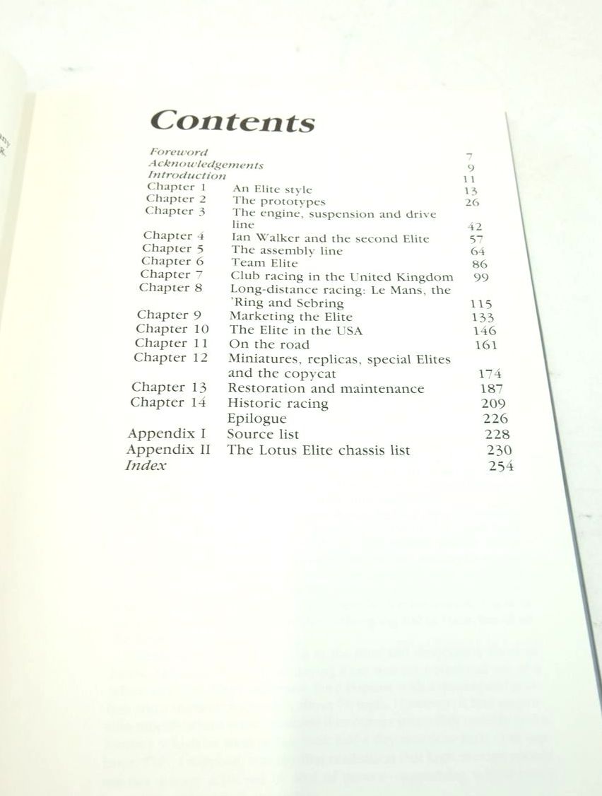 Nearly fine condition in a nearly fine dustwrapper. The complete history of Colin Chapman's revolutionary fibreglass-bodied Lotus Elite from its early development in a small North London factory to six consecutive class wins at Le Mans and countless successes in international and club events worldwide. Green boards, gilt title to spine. B/w photos.
