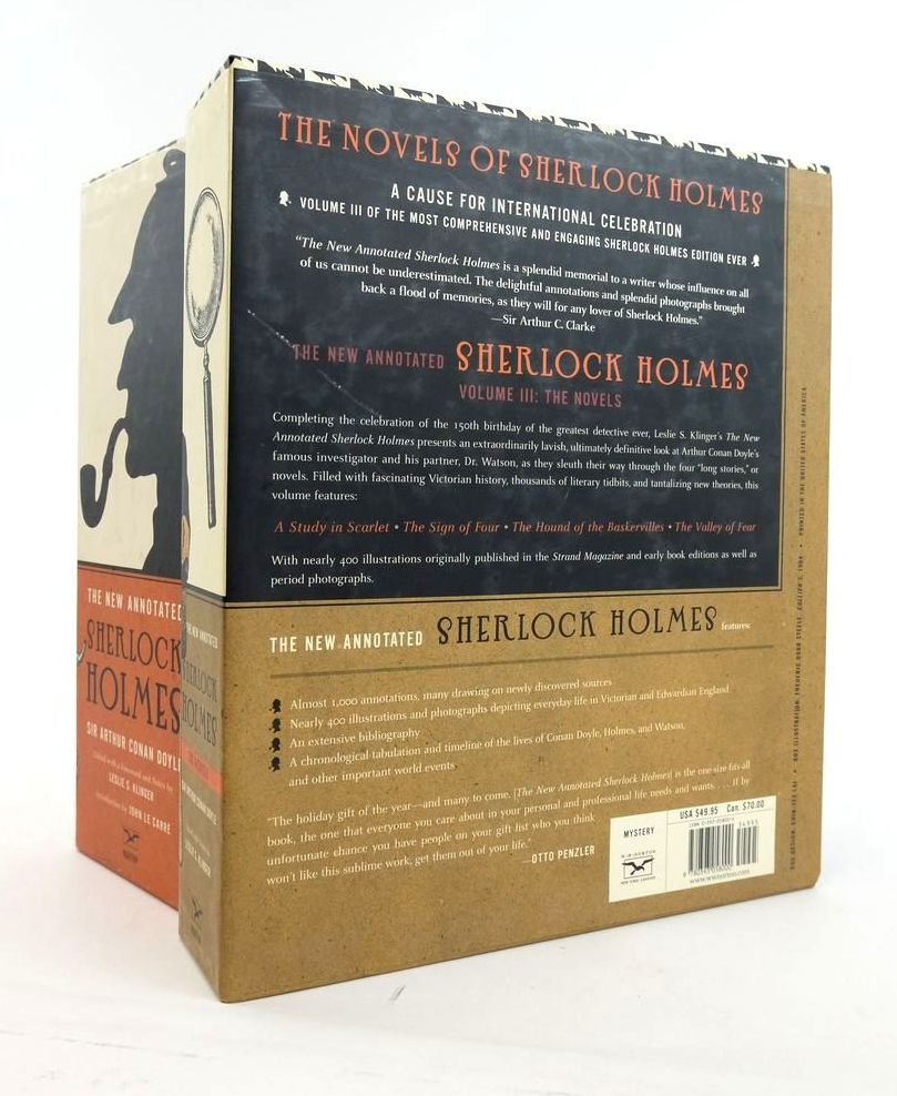 Very good condition. 150th Anniversary Edition. Edited with a foreword and notes by Leslie S. Klinger, Introduction by John Le Carre. Volumes I and II: The Short Stories - 56 classic short stories; Volume III: The Novels. Notes in red font. B/w illustrations. Volumes I & 2 in one slipcase, volume III in another.