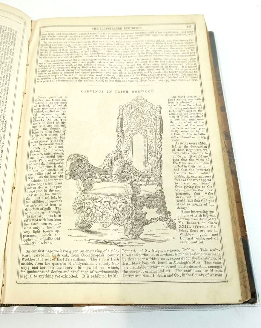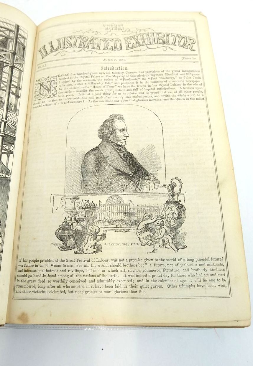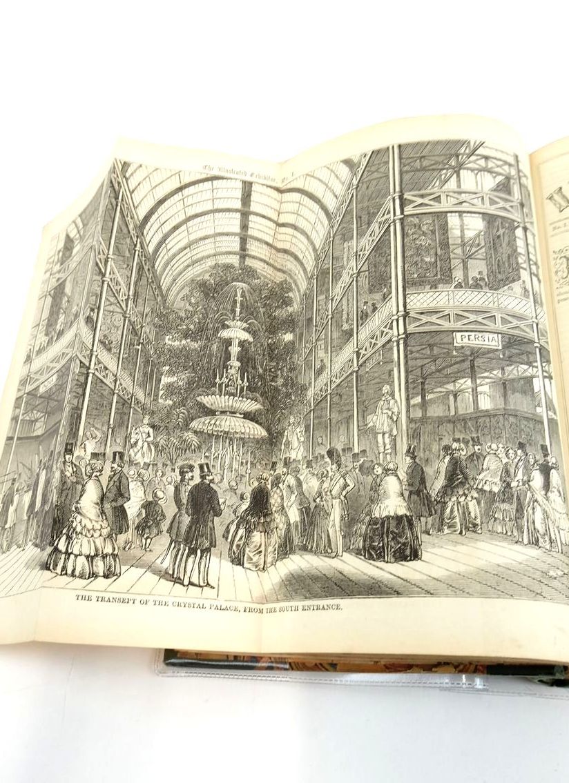 Almost very good condition. Three-quarter green leather binding with marbled paper boards. 5 raised bands to spine with gilt decorations, red title label and gilt title. Marbled endpapers and text block. Collected issues of The Illustrated Exhibitor from No. 1 June 7 1851 to No. 30 December 27 1851. B/w illustrations throughout including fold-out illustrations.