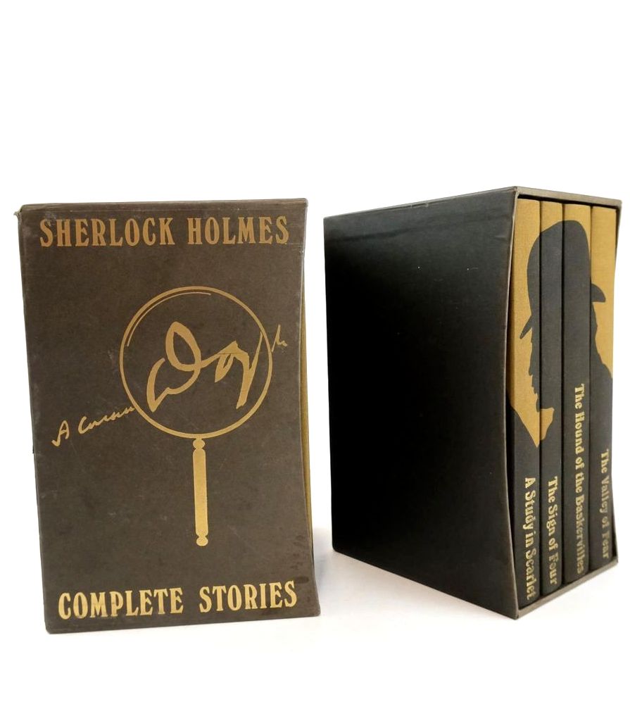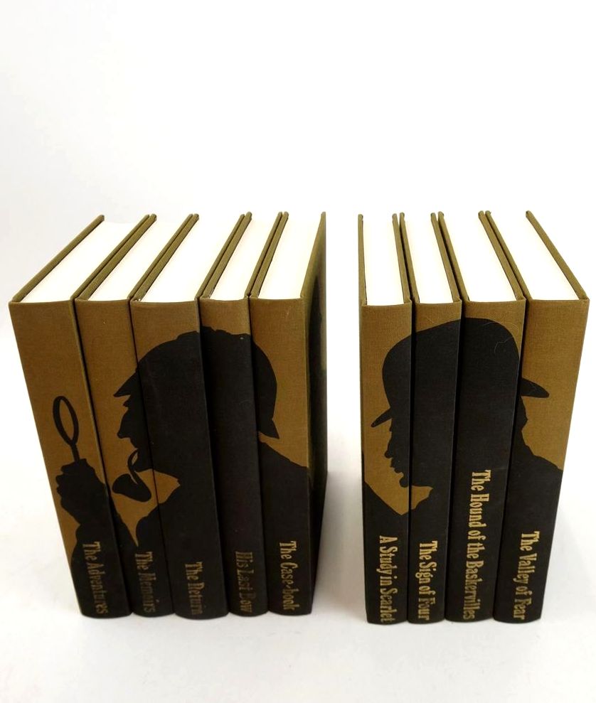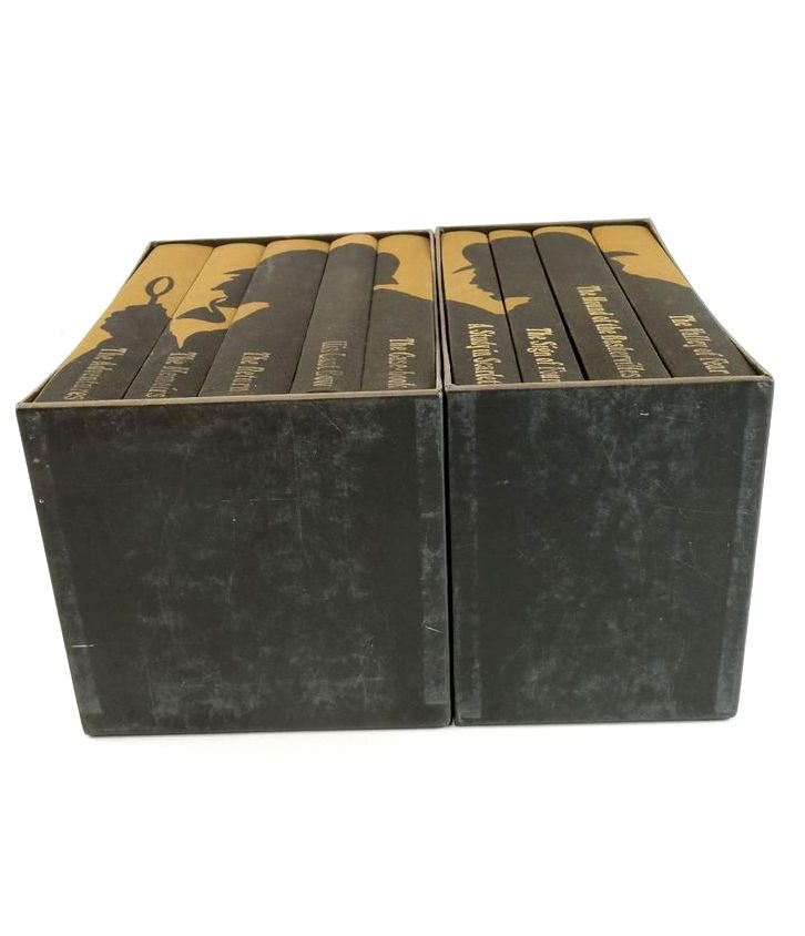Very good condition. Nine volume set in two slip cases: The Case-book; His Last Bow; The Return; The Memoirs; The Adventures; A Study in Scarlet; The Sign of Four; The Hound of the Baskervilles; The Valley of Fear. Green cloth boards with black silhouette of holmes, gilt title to spine. B/w illustrations. One set of five and one set of four in slipcase.
