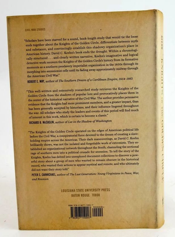 Nearly fine condition in a slightly better than very good dustwrapper. A comprehensive analysis of the Knights of the Golden Circle, a secret southern society that initially sought to establish a slave-holding empire in the "Golden Circle" region of Mexico, the Caribbean, and Central America. Red cloth boards, gilt title to spine. vii and 308 pages including index. A few b/w illustrations.