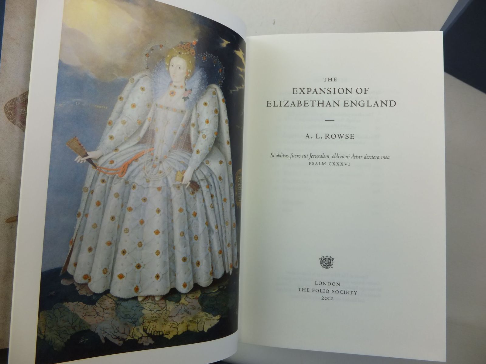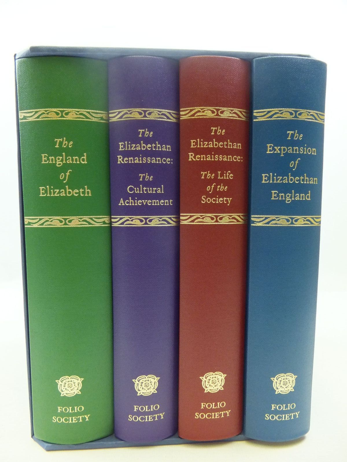 Fine condition. Different coloured bindings, with gilt titles and decorations. Titles are: The England of Elizabeth; The Elizabethan Renaissance: The Cultural Achievement; The Elizabethan Renaissance: The Life of the Society; The Expansion of Elizabethan England. Colour illustrations.