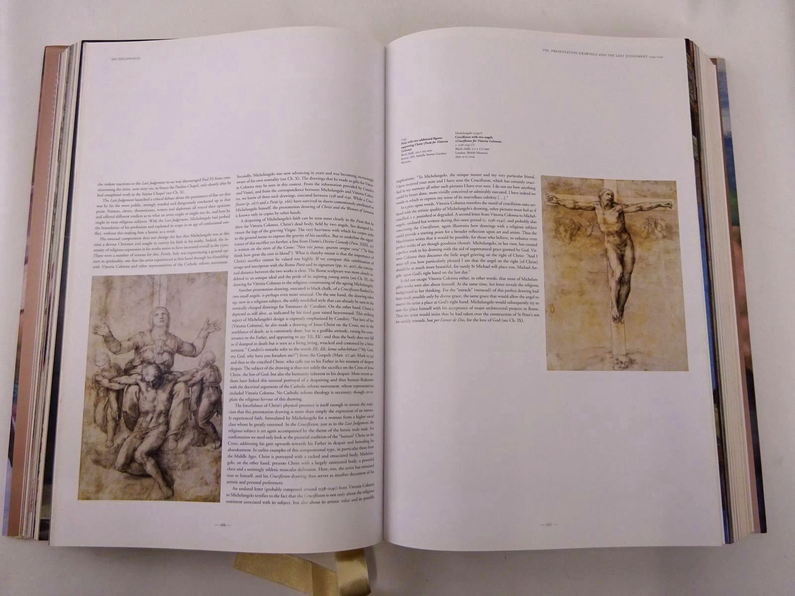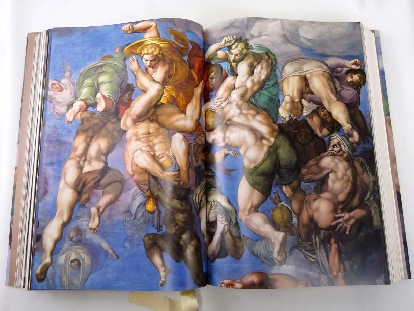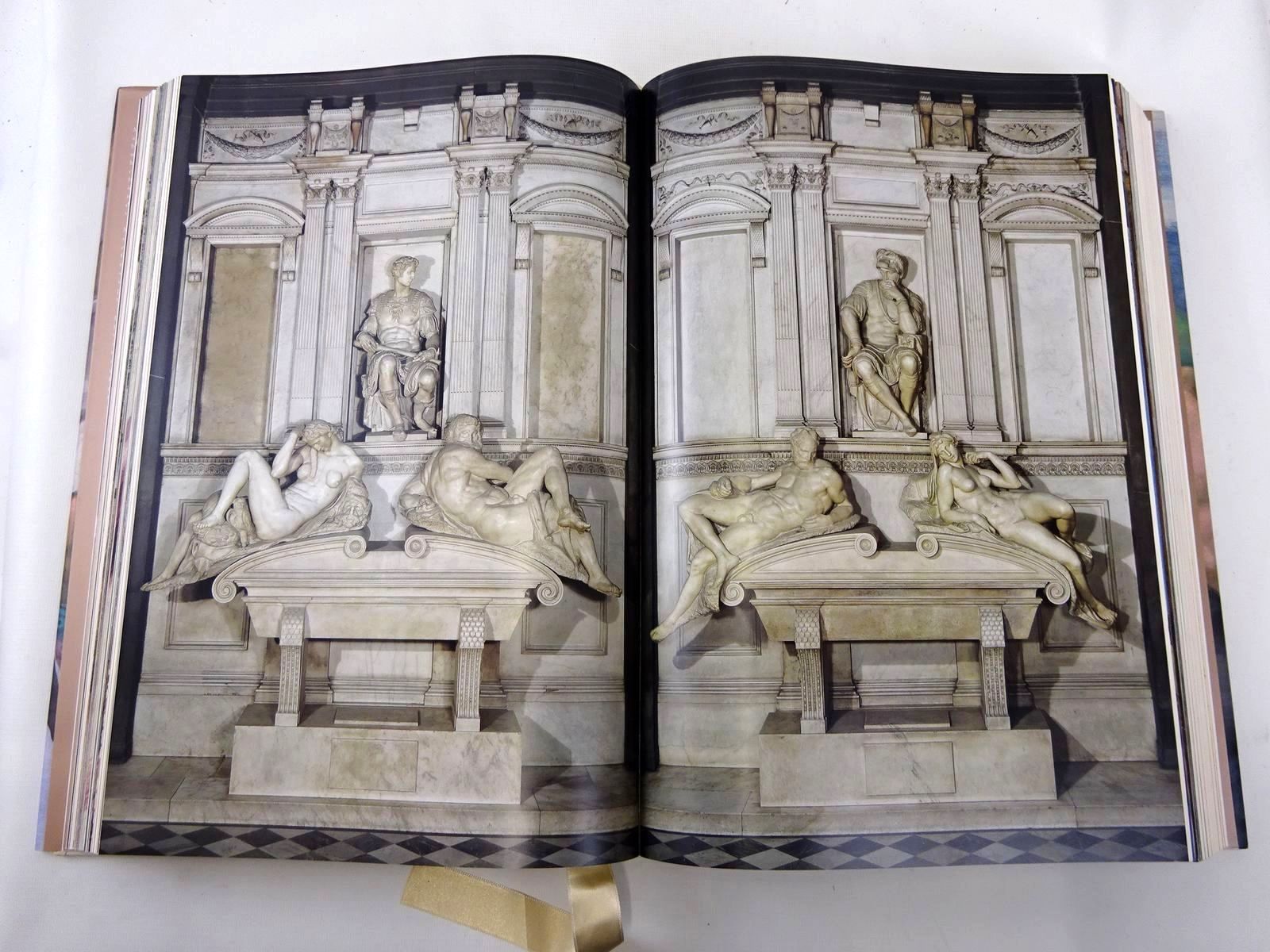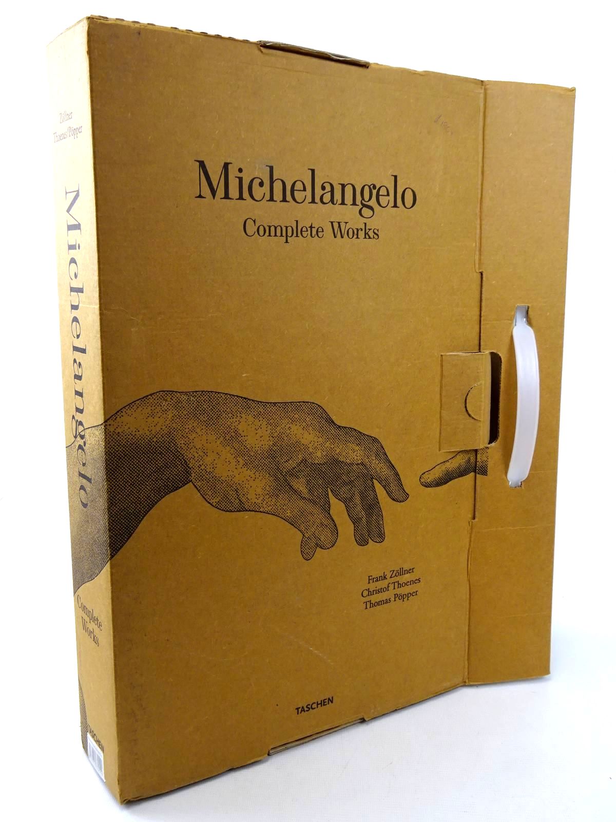 Fine condition in a nearly fine dustwrapper. Very large format - heavy oversized volume! Comes complete in its own cardboard carry case. This book, presents in both words and images Michelangelo's enormous oeuvre in a truly comprehensive fashion. Beautiful shimmering cream cloth with white titles.