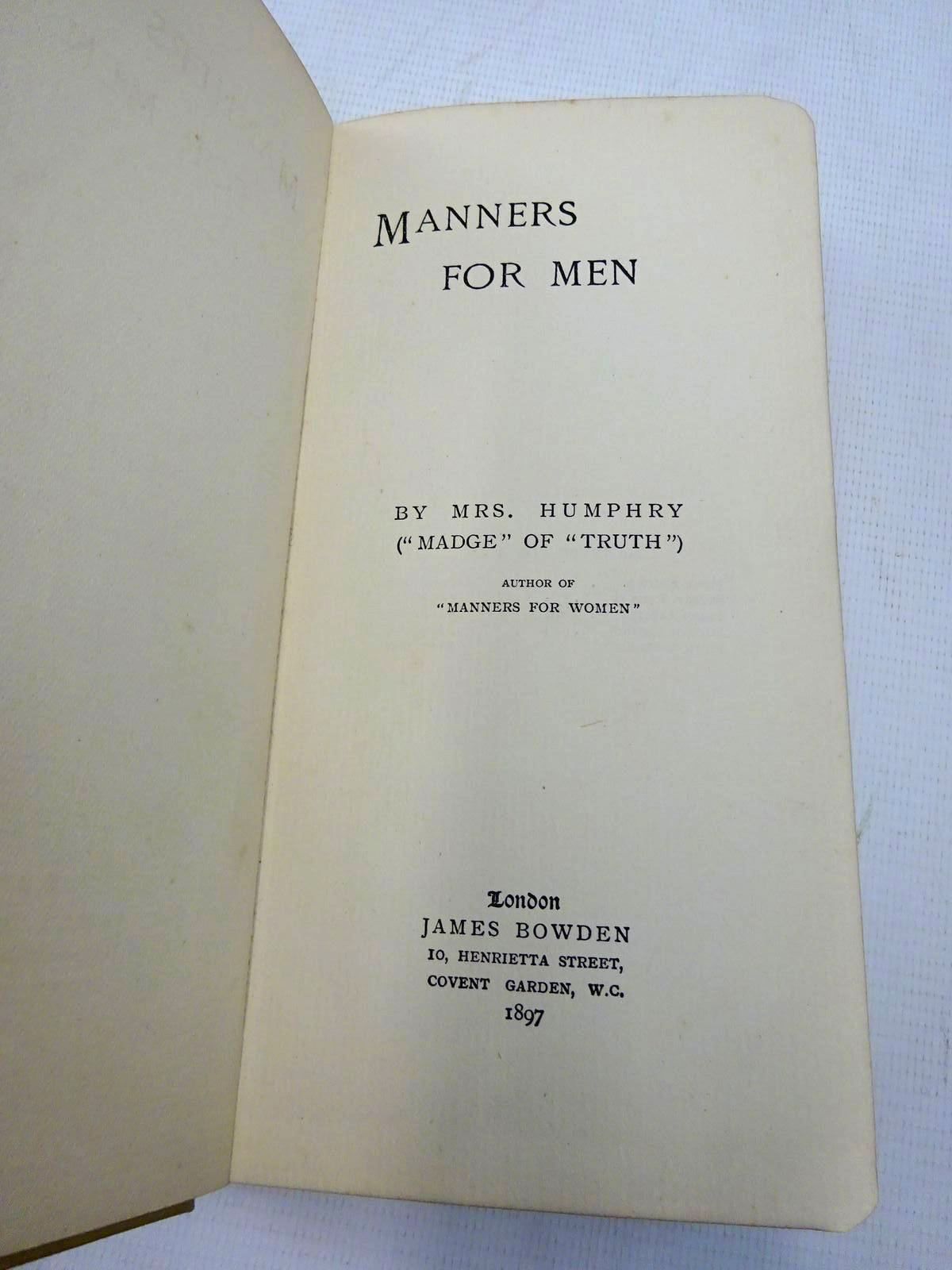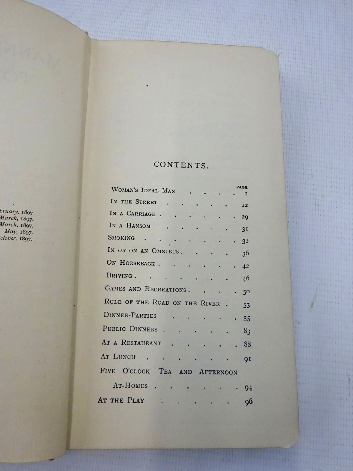 Very good condition. Beige cloth with black titles and some decoration to front cover. Includes chapters on 'Woman's Ideal Man'; On Horseback; Public Dinners and more.