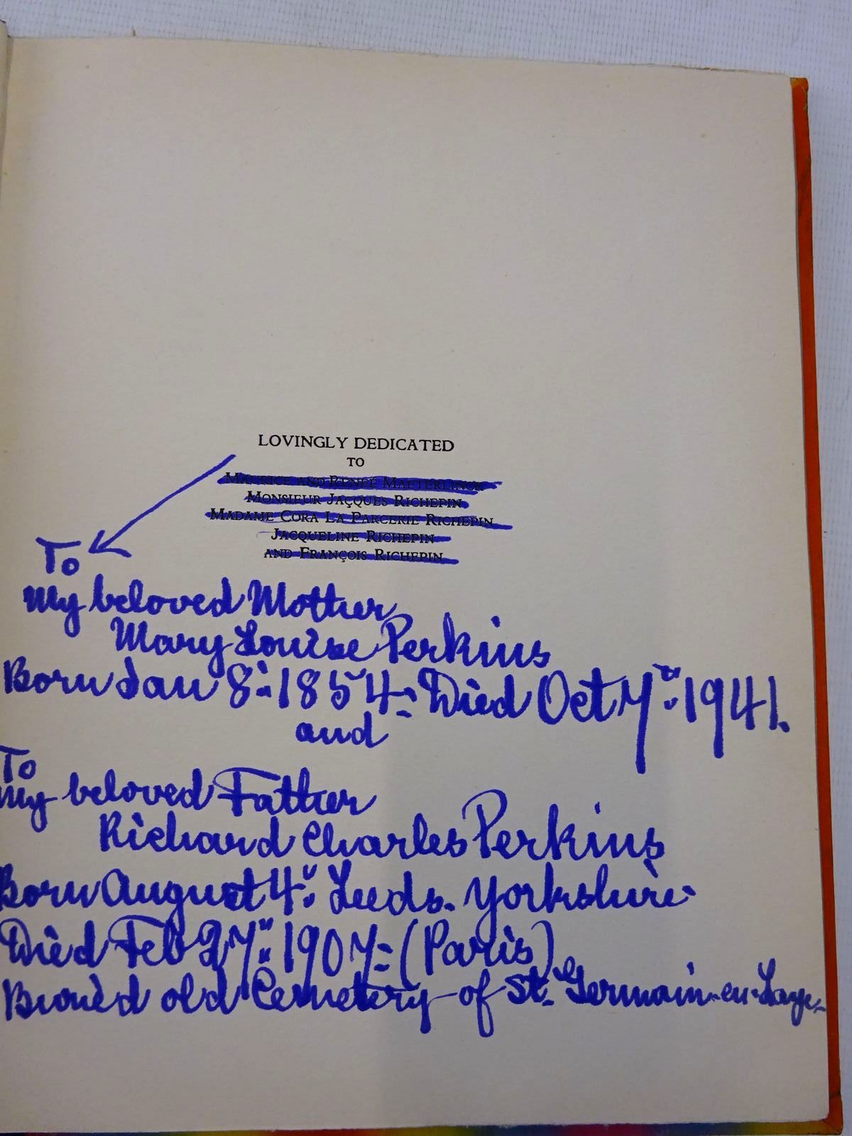 Bumping and wear to spine and corners. There are Inscriptions and annotations in ink, which appear to be by the Author (possibly a proof copy?). Wrapper is creased with tears and chips; a few 1-2" pieces of loss to spine; smaller loss to edges; some grubby marks.