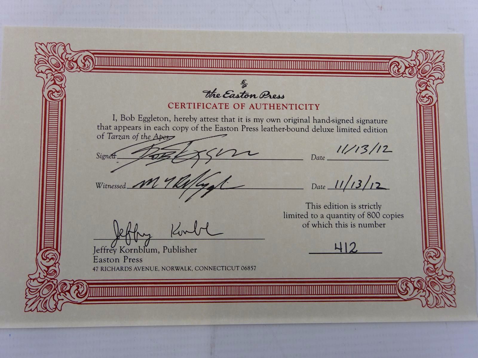 SIGNED by artist to special page directly after front endpaper. This is Copy No. 412. Also comes with it's original certificate of authenticity, also SIGNED by artist and witnessed. A stunning copy! In original green cloth slip case that is near fine; couple of lightest marks to top one side. Pictorial onlay and gilt titles to one side of slip case. This copy would make a wonderful gift.