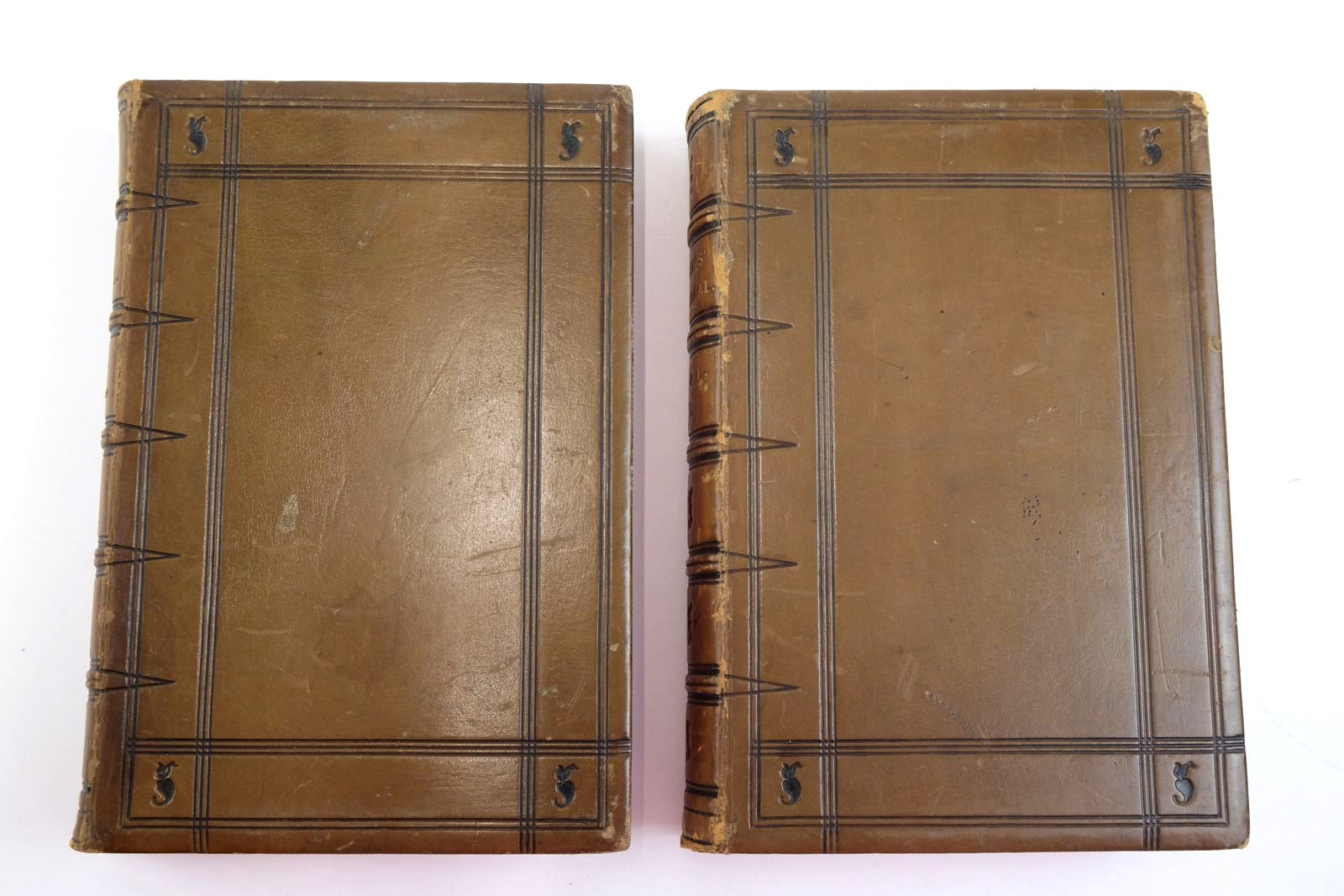 Some rubbing/wear to spines and cover edges; a little loss to top layer of leather in places. A few scuffs to covers. Bookplates to front pastedowns. Volume I - the front endpaper is nearly detached, but still present. Inscriptions in ink to prelim pages of volume I. Volume II has damp marks to top of page edges of prelims. Foxing to both books.