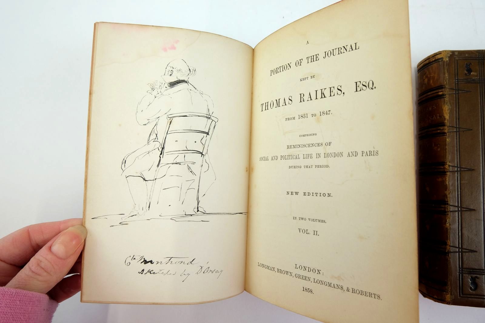 Almost very good condition. Brown leather covers, raised bands to spines, gilt titles. Comprising Reminiscences of Social and Political Life in London and Paris During That Period. New edition, In Two Volumes. Raikes was best known in London as a dandy. He spent much of his time there in the fashionable clubs of the West End. Raikes' journal is notable for containing the memoirs of a man who counted among his friends some of the most influential men of his day.