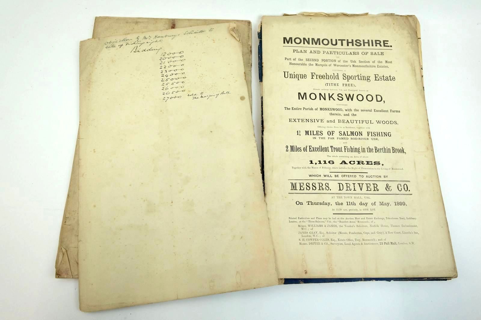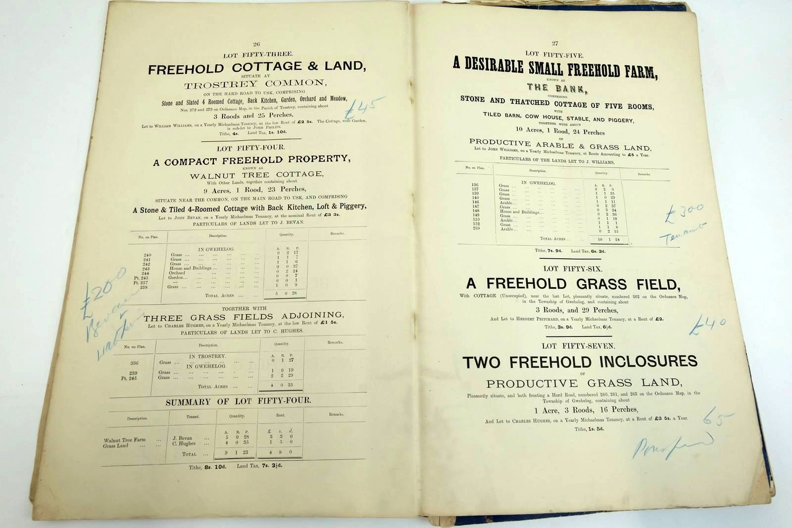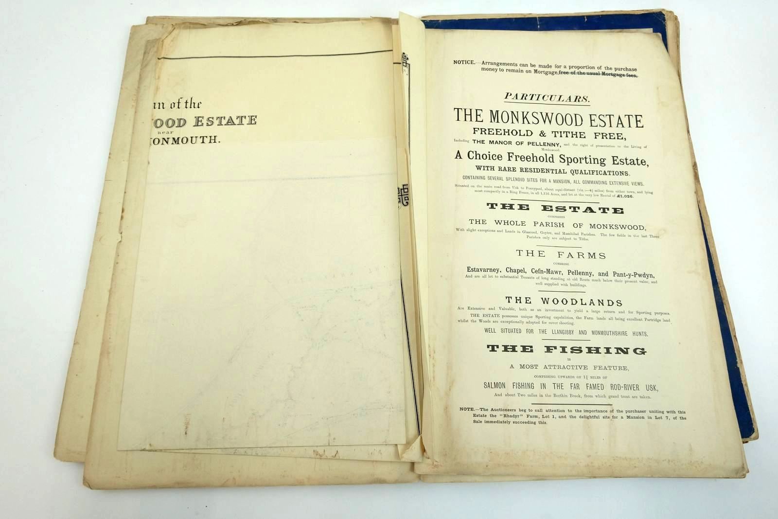Poor condition. Large format. Paperwraps. Comprises of 4 parts: Property on and Near Gwehelog & Trostrey Commons (First Day's Sale); The Monkswood Estate, Near Usk (Second Day's Sale); Property In and Near the Town of Usk (Second Day's Sale); Property On and Near Glascoed Common (Third Day's Sale). With large folding maps.